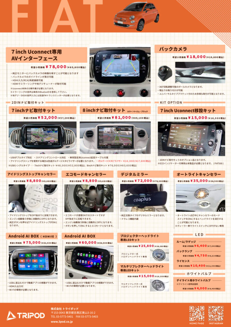 7インチナビ取付キット (純正7inch Uconnect・USB×2個専用)